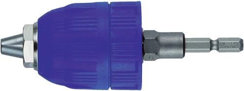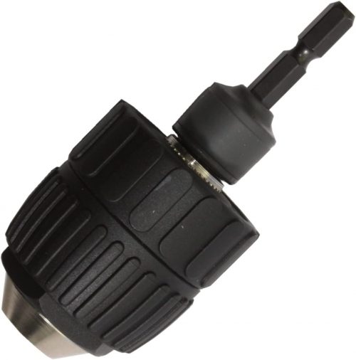 シャンク径6.35mmの六角軸を持つ小径ドリル用のドリルチャックです。チャック能力は1.5〜6.5mmで、キーハンドルは不要です。先端工具を簡単に取り付けることができるキーレスタイプです。ドリルや軸付砥石を充電ドライバーに取り付けることで、穴あけや研磨作業が簡単に行えます。便利です。