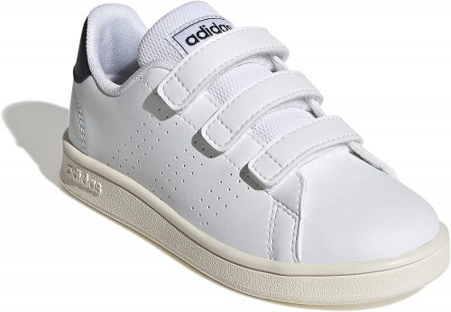 グランドコートシューズからインスピレーションを得た、クラシカルなデザインの子供用スニーカー。足をしっかりとホールドできる特徴を持つ、3本の面ファスナー付きストラップを備えています。