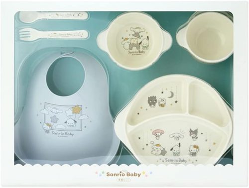 サンリオの人気キャラクターがデザインされたかわいい食器セットです。離乳食から幼児食まで長く使用できるのが利点です。ハローキティ、ポチャッコ、マイメロディ、ポムポムプリン、シナモロール、クロミ、バッドばつ丸、けろけろけろっぴなどが描かれています。