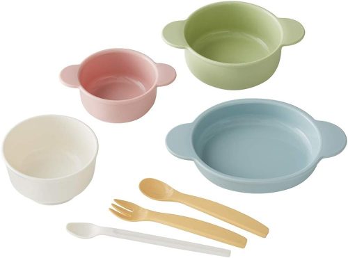 このベビー向け食器セットは、離乳初期から完了期までに必要なアイテムが揃っています。セットには小さいスプーン、普通のスプーン、フォーク、ご飯茶碗、小皿、お子様が食べやすいミニサイズのばちが含まれており、成長に合わせて組み合わせを変えることができます。おすすめの食器セットです。
