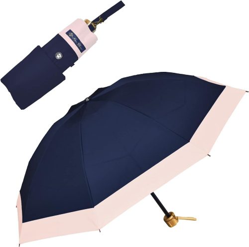 遮光率・UVカット率が100%で、完全遮光・完全UVカットと謳う折りたたみ日傘です。特徴的な点は、生地の裏面にポリウレタンコーティング加工が施されていることです。これにより、直射日光や紫外線をブロックしながら遮熱効果も発揮し、熱中症対策にも役立ちます。