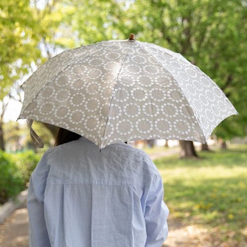 遮光率と紫外線遮蔽率は99.9%以上と謳っています。生地の裏面にはポリウレタン樹脂コーティングを施しており、地面からの反射もブロック可能です。さらに、耐水性も備えているため、晴雨兼用傘として活躍。加えて、スムーズに開閉できる設計なので、急な雨にも迅速に対応できて便利です。