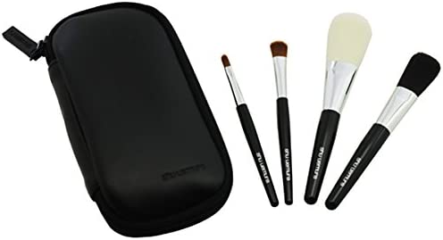 ブラックのエレガントなポーチが付いた、持ち運びや保管に便利なメイクブラシセット。フェイスブラシ・チークブラシ・アイシャドウブラシ・リップ兼アイライナーブラシの4本セットです。