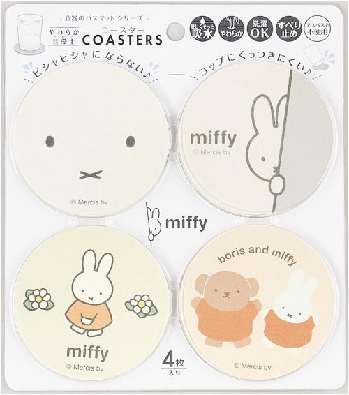 洗濯機で洗えるので、汚れが気になっても心配ありません。吸水性がありながらも、子供がいる家庭でも安心して使える柔らかい触り心地です。また、可愛いミッフィーちゃんのデザインが施された珪藻土コースターは、贈り物にも最適です。